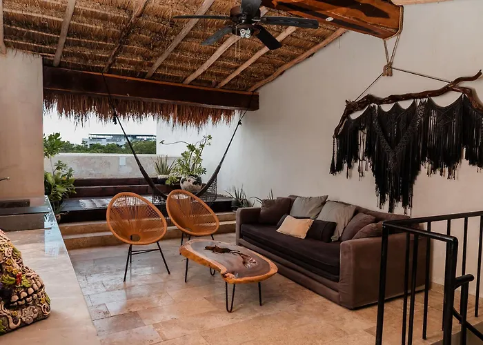 Guests of this spacious Bajo Cielo, Jungle-View Terrace With Private Pool apartment can visit one of the highly rated landmarks, Carlos, placed only a 14-minute walk away. Other sights are Tulum Archaeological Site (2.7 km) as well as Tulum Underwater Dive Shop (1.9 km). - ❓